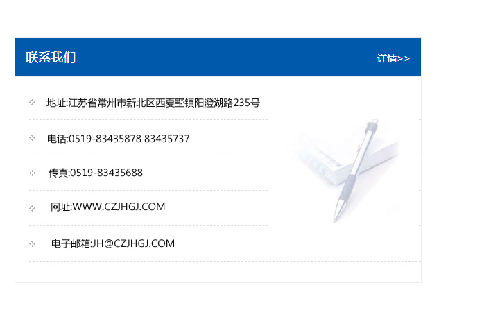 地址:常州市新北區友邦商務大廈1幢16、17層  電話:0519-85101652  傳真:0519-85112595  郵編:213022  網址:www_cz-jiayue_cn.cczhuangji.com  郵箱:xiajifengaa@163.com